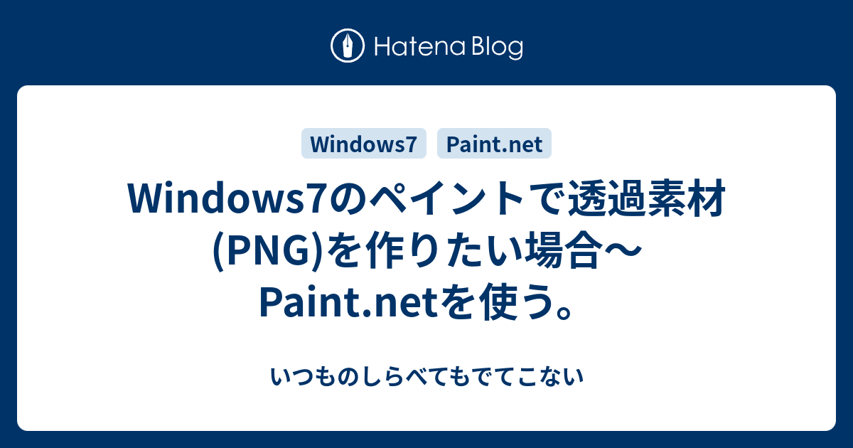 Windows7のペイントで透過素材 Png を作りたい場合 Paint Netを使う いつものしらべてもでてこない