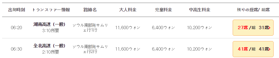 韓国の高速バスと市外バス 3 時刻表 料金 空席の確認 韓国のどこにも行けるよ