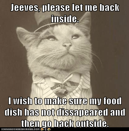 Jeeves Please Let Me Back Inside I Wish To Make Sure My Food Dish Has Not Dissapeared And Then Go Back Outside Memebase Funny Memes