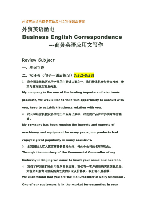 外贸英语函电商务英语应用文写作课后答案 百度文库
