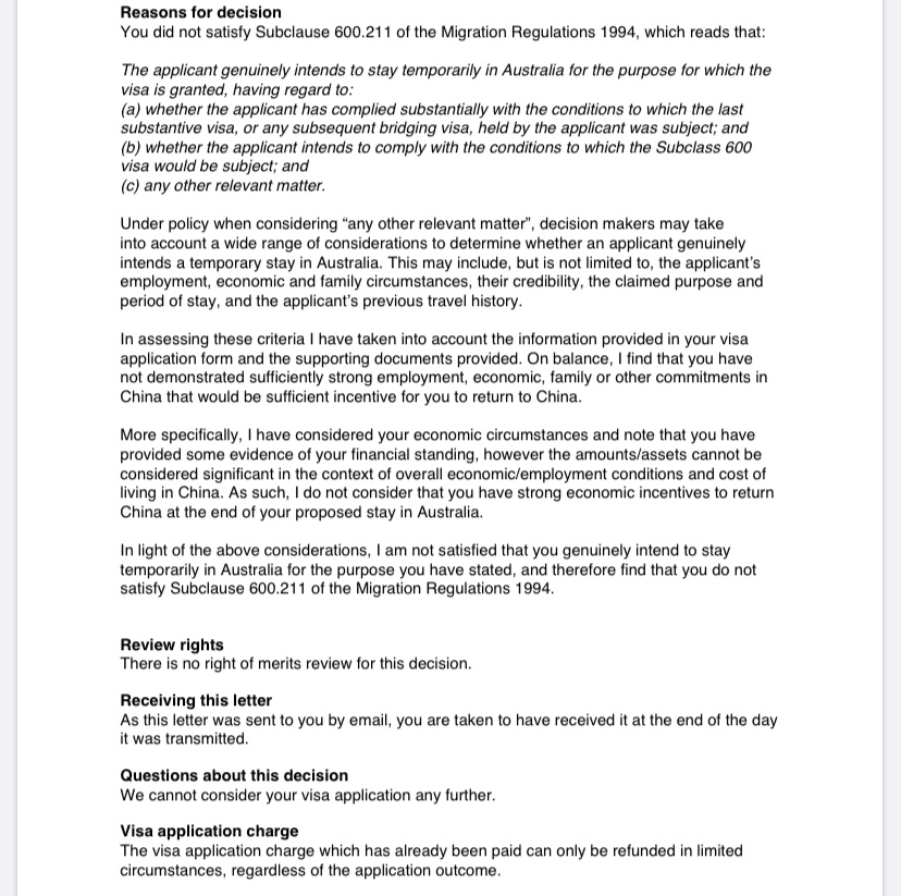 澳大利亚旅行签证被拒是否有申诉一说呢 穷游问答
